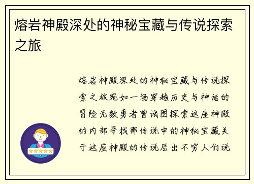 熔岩神殿深处的神秘宝藏与传说探索之旅