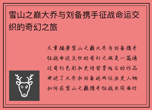 雪山之巅大乔与刘备携手征战命运交织的奇幻之旅